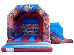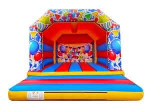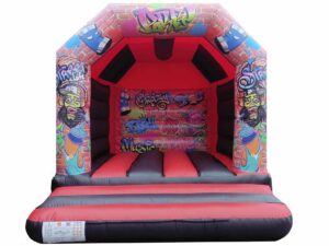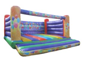 All of our adult bouncy castles come with reinforced webbed beds at no extra charge, making them more robust. Some also include a built in rain cover (check each bouncy castle for more details).