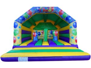 All of our adult bouncy castles come with reinforced webbed beds at no extra charge, making them more robust. Some also include a built in rain cover (check each bouncy castle for more details).