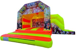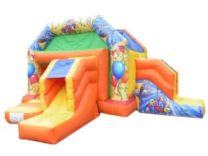 Commercial Combi Bouncy Castles for Sale. We have a large range of combi bouncers available such as front slide combis, adults combis, children's combis all come complete with any colours and artwork you require.