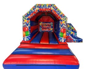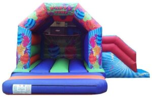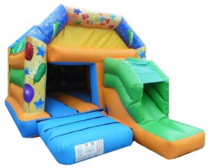 Our bouncy castle slide combi’s are suitable for both indoor and outdoor use. They come supplied with the pegs for securing down when used outdoors and the sandbags needed for mounting on when used indoors. Take a look through our exciting range of products.