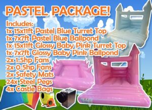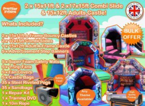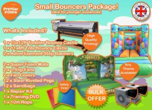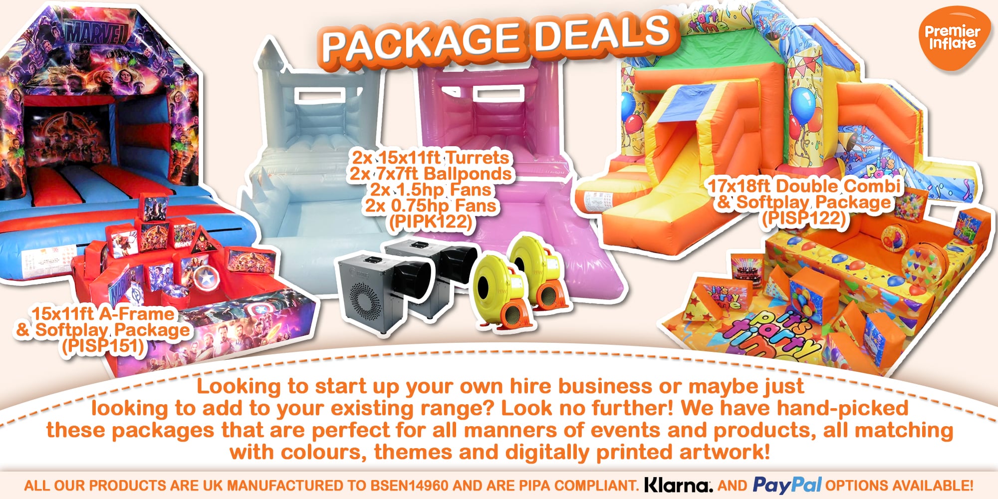 We have a range of bouncy castle and inflatable package deals. Our range of deals, includes bouncy castle starter packages, which are ideal for those just beginning in the inflatable hiring business. We also offer packages suited to established inflatable hirers, looking to expand their range with new styles and inflatables.