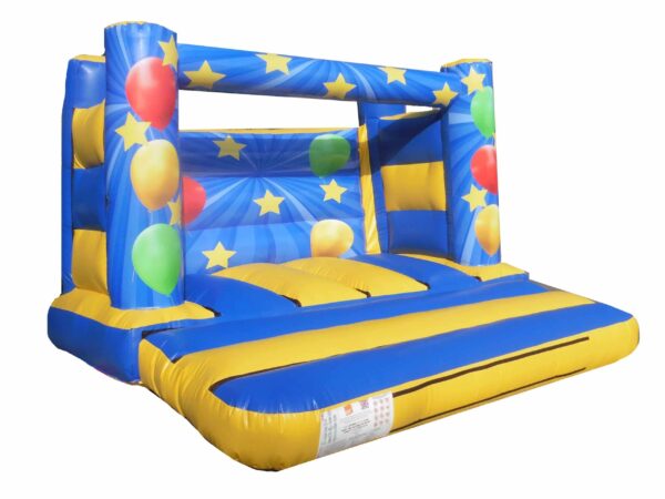 10x12ft 4 Post Party Bouncy Castle which has been designed for younger children and with its 4 post structure it makes it perfect for indoor hires and would be an ideal set up with soft play etc to create a toddler package. This Bouncy castle is manufactured with unisex colours and digitally printed artwork which means it will appeal to both boys and girls.