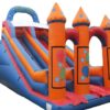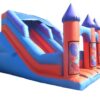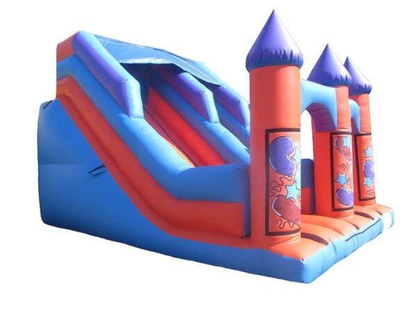 11ft Platform Commercial Deluxe Bouncy Slide with Turrets for Sale. Unisex Theme and artwork so its appealing to both boys and girls and has velcro areas so you can choose to purchase Detachable Velcro Artwork to change the theme of your Bouncy Slide.