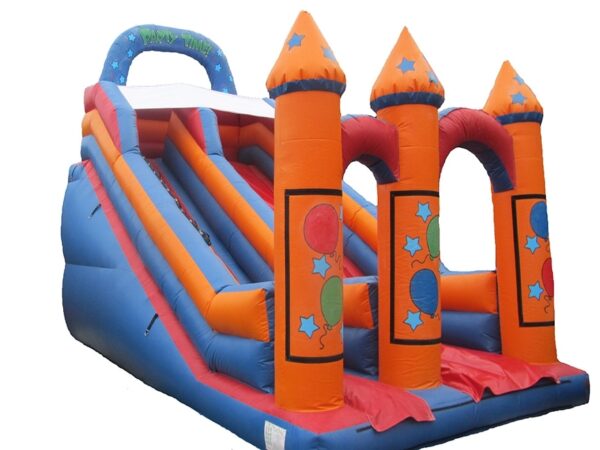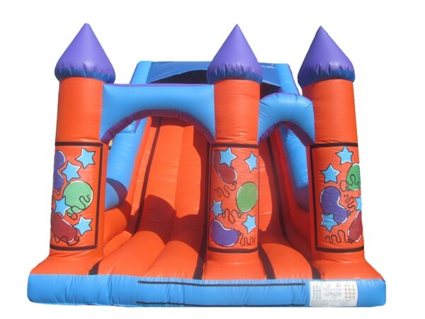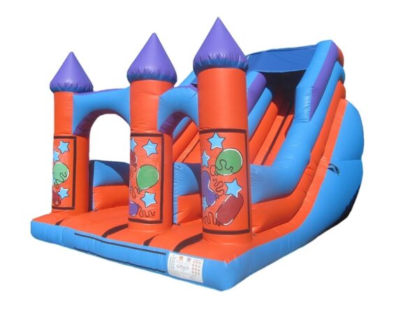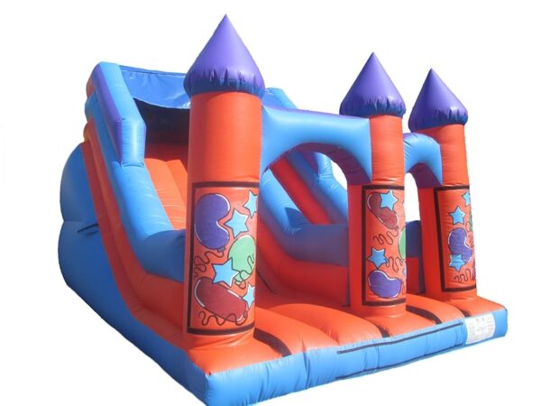 Includes velcro areas so that detachable velcro artwork can be purchased with this or at a later date to instantly change the theme of your bouncy slide. A very popular slide and great for events, fun days, fates etc. Can be manufactured to any design or with any colours.