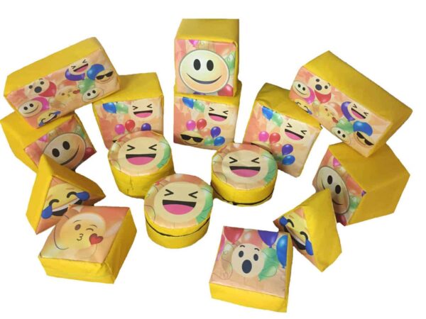 15 Piece Emoji Soft Play set for Sale which is perfect for younger boys and girls. Can be hired out as part of a soft play package or alongside a bouncy castle / Inflatable to keep the younger children entertained.
