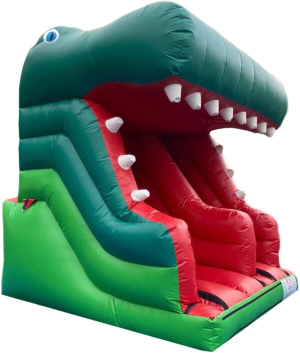 5ft. Platform 3D Dino Themed Bouncy Slide available to buy in a variety of colours, sizes & styles! Buy this dino themed slide today to expand your current hire business or can be used personal use this commercial bouncy slide will not disappoint. A really popular commercial bouncy slide suitable for most age groups!
