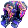 16x12ft. Commercial Deluxe 3D Disco Front facing slide combo bouncy castle featuring a new and exciting design that is appealing for children. This Front slide combination has a great sized internal bounce space as well as built in shower cover. Slip sheet included. This Castle can be made to your specifications i.e. choice of colours, size, style of artwork and can also include your business contact details.