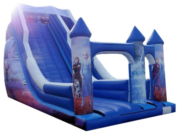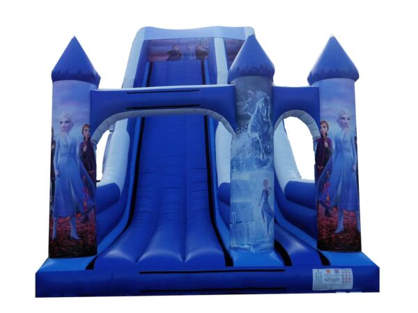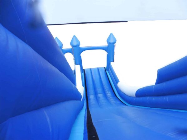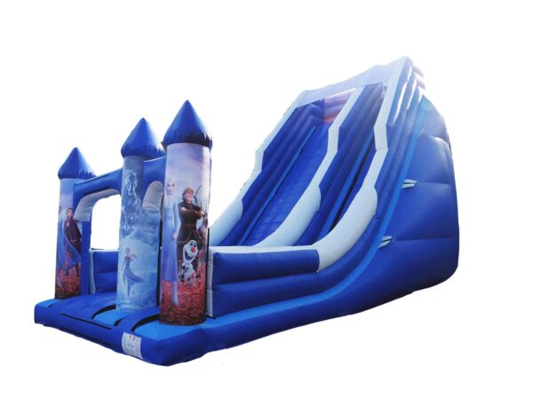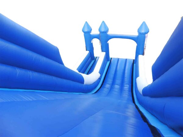 Turret front 20 ft. Platform Bouncy Slide for sale with themed artwork and colour scheme which can be chosen by you! This commercial platform bouncy slide is available with or without digitally printed artwork, and with its large size it's great fun for both adults and children. Slip & Climb Sheets included.