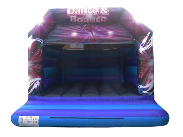 15x15 ft. Adults Disco Jumping Bouncy Castle for sale with digitally printed artwork. This Adults Bouncer is a popular design with front printed rain cover and rear enclosed covering to enhance the dark effect inside. A popular Disco Bouncy castle ideal for both children & adults.