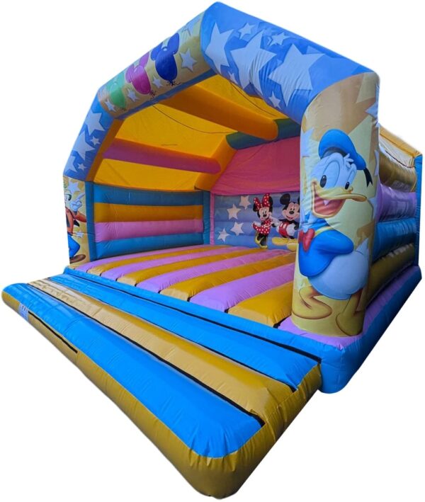 20x20 ft. Adults Commercial Glossy Character Bouncy Castle available for sale by UK based Bouncy Castle manufacturers Premier Inflate Ltd. This Adults Unisex heavy duty bouncy castle is available in a variety of colours & styles which includes rain cover, robust design and gloss material. Includes vibrant digitally printed artwork that is bound to catch everyone's attention, especially with its popular characters featured making it ideal for both kids and adults.