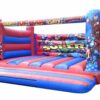 A Colourful, Bright and Virbant Adults low top 4-post Bouncy Castle for Sale with Popular Superhero Artwork which is digitally printed for the perfect finish. This 18x18 ft. Adults Jumping castle has a low top design which is perfect for indoor use due to its lower height but is still suitable for outdoor hires. Include your company logo and/or detachable banners.