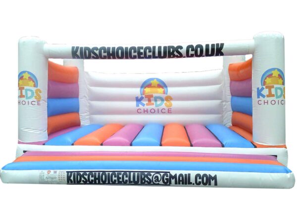 This adults bouncer is ideal for indoor use as well as outside and will pack away small enough to fit into the rear of a modern car. This Adults Jumping Castle is available in a variety of colours and designs. This Bespoke Adults Inflatable Bouncer can be made to your specifications i.e. choice of colours, size, style of artwork and can also include your business contact details.