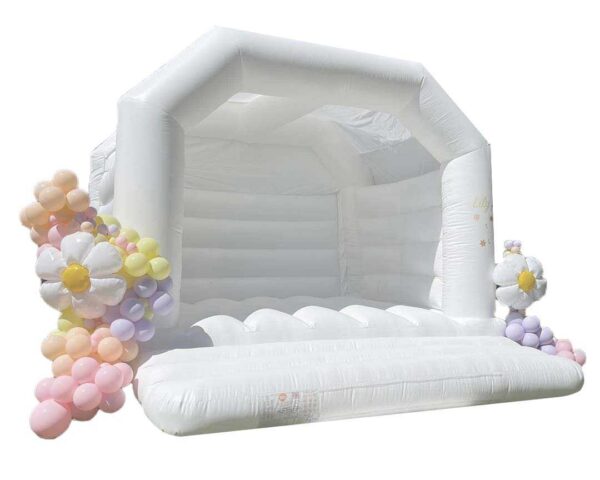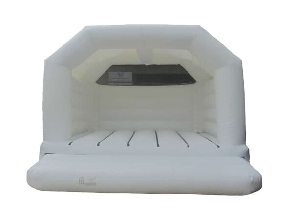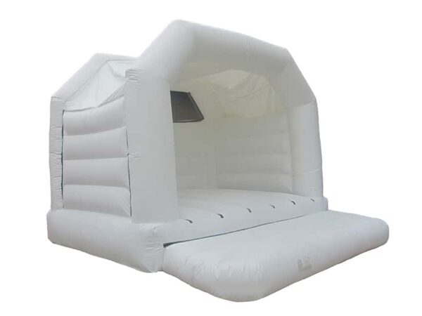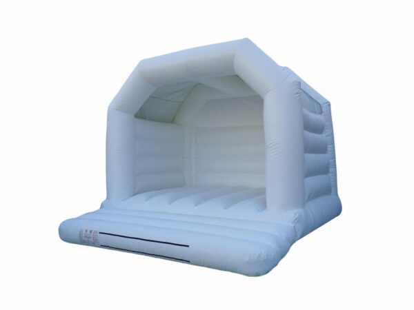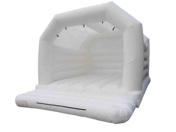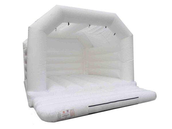 15 x 15ft Adults Commercial Wedding Bouncy Castle to Buy. Suitable for Adults and Children and is in an all white colour to go perfectly at any wedding. Is great fun for both boys and girls of all ages so is great for weddings and makes for some amazing wedding photos.