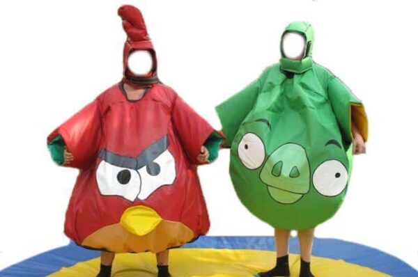Angry Bird Sumo Suits / Fantasy Suits for Sale. A great game for children to play and with a popular theme of angry birds. Each player has to put on the fun suits and then have to fight to get the other play to the floor first.