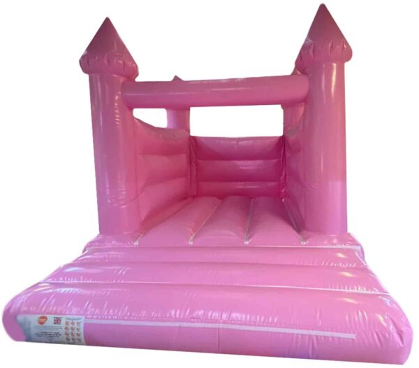 15x11ft Commercial Turret Top Baby Pink Bouncy Castle in stock now and ready to be dispatched. Unique Turret Top design and in a Baby Pink colour it is ideal for children of any age. This is the perfect Bouncy Castle for any occasion such as birthday parties.