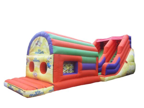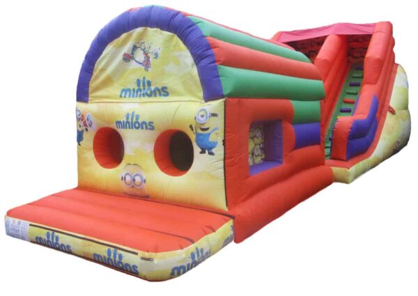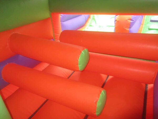 11x38ft 2 Part Bouncy Obstacle Course for Sale. Includes a fully enclosed inside bouncy/obstacle area and an 8ft Platform Mega Slide, provides hours of fun and entertainment for children of all ages.