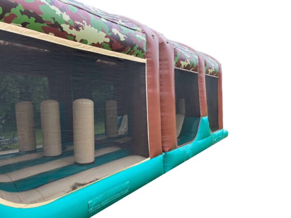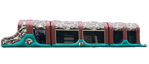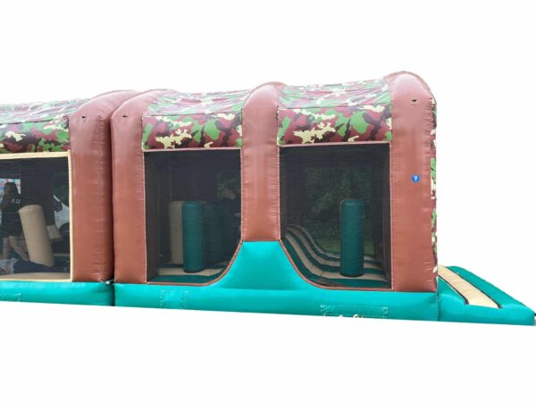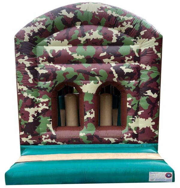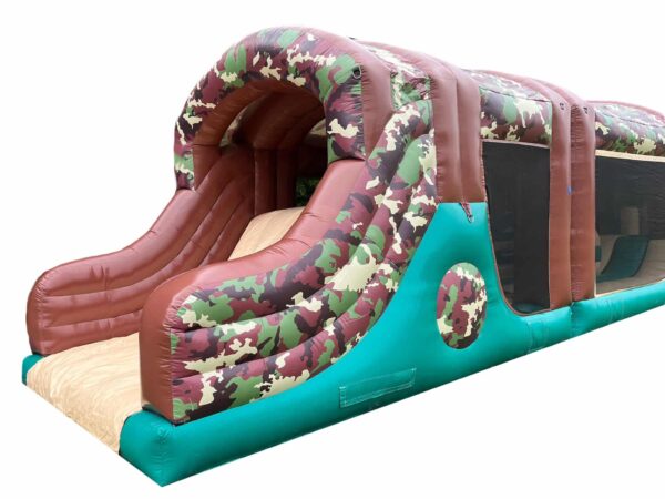 50x11ft. Inflatable Army Print Bouncy Castle Obstacle Course for sale available to buy in a variety of colours & sizes! Featuring an eye-catching printed army design, this Bouncy Obstacle Course is ideal for large outdoor gatherings such as fates & festivals perfect for corporate activates! This inflatable consists of a 5ft platform slide at the end, a variety of obstacles like biff & bash, posts, ramps, up & overs and slides. This serves as a real crowd pleaser at any event across the UK, buy yours today!