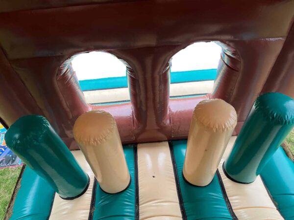 This HUGE inflatable bouncy obstacle course is manufactured in three parts/sections which are connected together by reinforced commercial velcro making it much easy to store & transport this particular obstacle course.