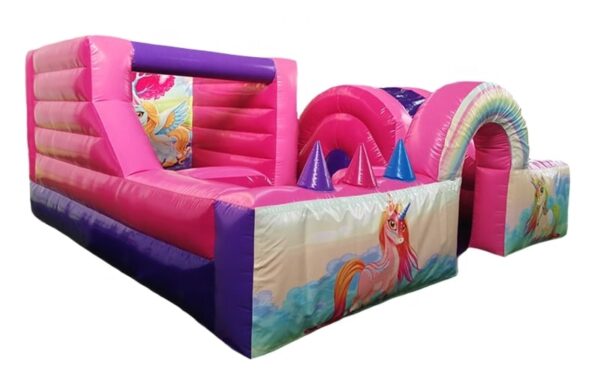 15 x 15 ft. Commercial heavy duty Inflatable unicorns girls themed Toddler Play Park for sale which is ideal for both Toddlers & small Children. This popular girls themed unicorns design with digitally printed artwork & vibrant girls colours ideal for girls! This inflatable Bouncy play park centre is a fantastic addition to any hire fleet & ideal for indoor spaces as well as out. Don't delay & buy today!