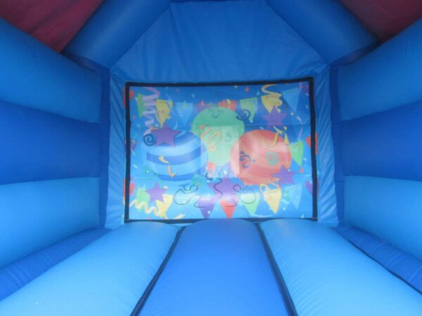 Easily one of the most popular sized bouncy castles for sale which is ideal for back garden use. These style bouncers are a manageable weight which are easy to handle and will fit into the rear of a car. This Castle can be made to your specifications i.e. choice of colours, size, style of artwork and can also include your business contact details.
