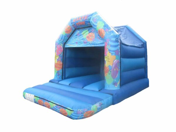 Premier Inflate include reinforced webbed beds on all Bouncy Castles include this popular one which provides extra strength and durability. A boys themed Party Bouncy Castle with digitally printed artwork including on the front rain cover, step and back wall.