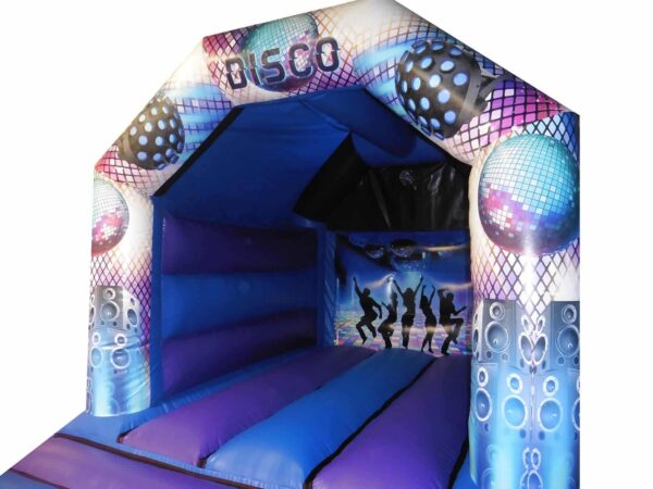 15 x 11 ft Commercial Deluxe Disco Bouncer for Sale. Extremely popular theme for 2018/2019 and comes with impressive detailed digitally printed artwork. Most requested size bouncy castle which makes it one of our bestsellers.