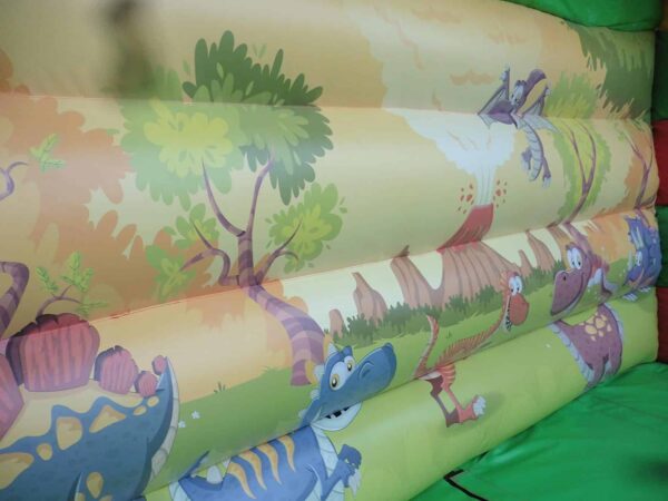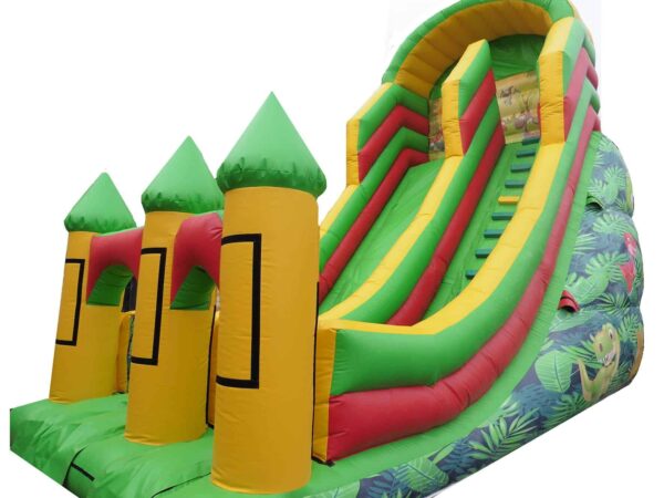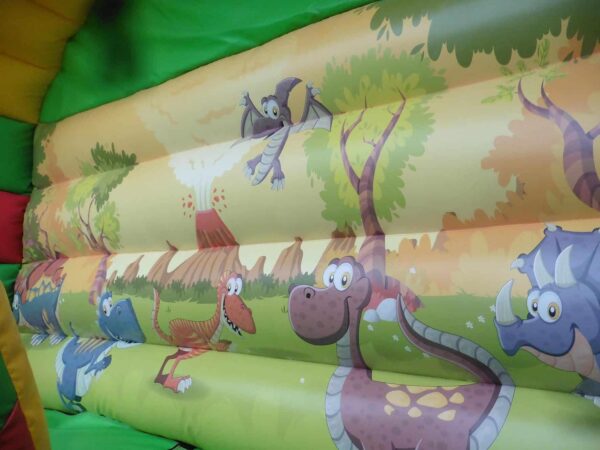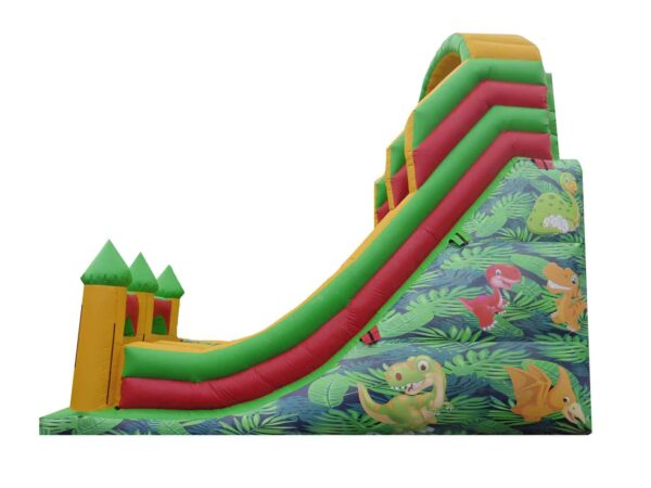 15ft Platform Commercial Deluxe Mega Bouncy Slide for Sale. Impressively sized and a great attraction at any event. Suitable for events, fun days, fates etc and is finished off with detailed digitally printed Dinosaur artwork which is appealing to both boys and girls.