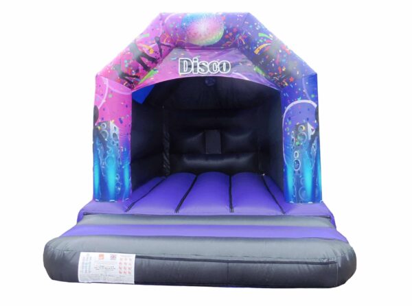 15 x 11 ft Commercial Bouncy Castle for sale. Our Most popular sized bouncy castle for sale which has been completed with digitally printed disco themed artwork which is appealing to both boys and girls.