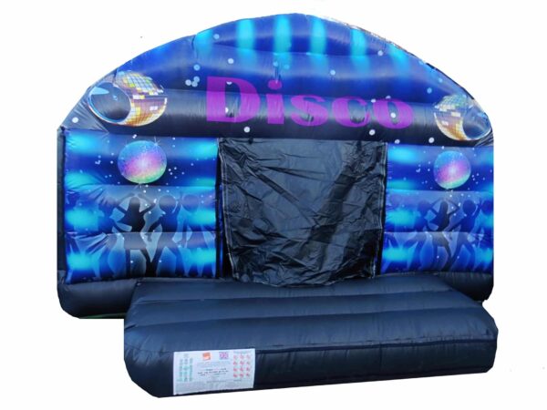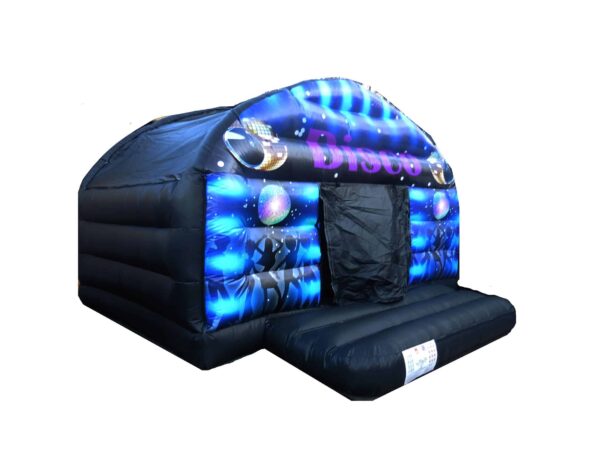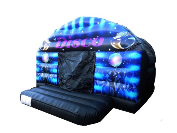 15x12 ft. Commercial Disco Bouncy Castle dome for sale which features a fully blackout internal design. A massively popular design and great for both boys and girls. Includes LED disco Light & Bluetooth speaker system.