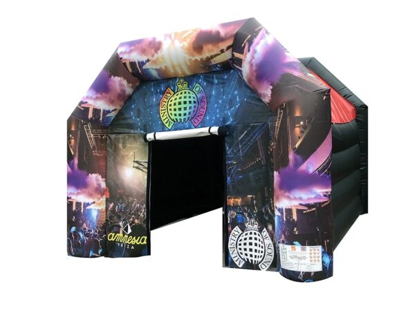 These style inflatables are a manageable weight which are easy to handle and will fit into the rear of a car. We can manufacture this inflatable marquee to your specifications i.e. choice of colours, size, style of artwork and can also include your business contact details.