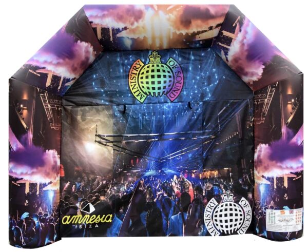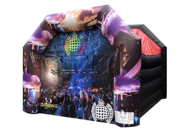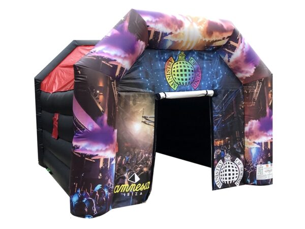 15 x 12ft Disco Marque for Sale with vibrant digitally printed artwork. This Disco themed artwork inflatable tent which can either be hand painted or digitally printed includes Bluetooth Speaker and disco light so it has the full effect for any event.