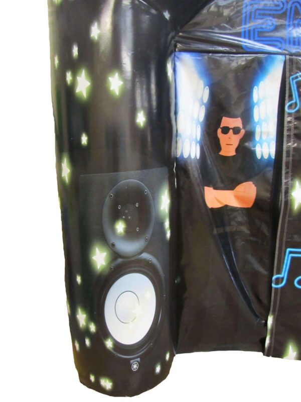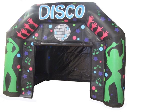 15 x 12ft Disco Marque for Sale with vibrant digitally printed artwork. This Disco themed artwork inflatable tent which can either be hand painted or digitally printed includes Bluetooth Speaker and disco light so it has the full disco effect for any event.