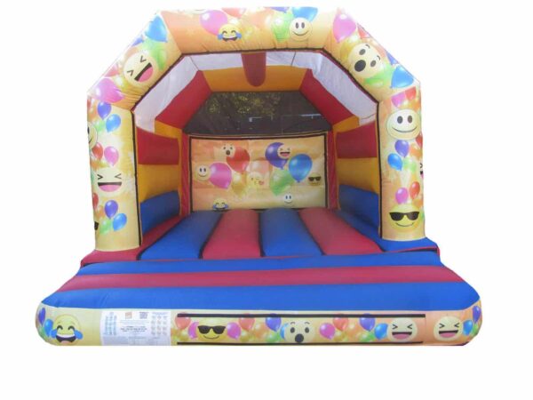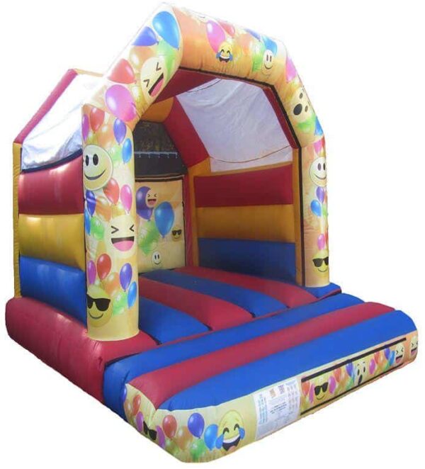 15 x 12ft Commercial Emoji Themed Bouncy Castle for Sale. Massively popular design which is suitable for boys and girls of all ages. An ideal size for a new hirer or to add to an already growing fleet of Bouncy Castles and Inflatables.