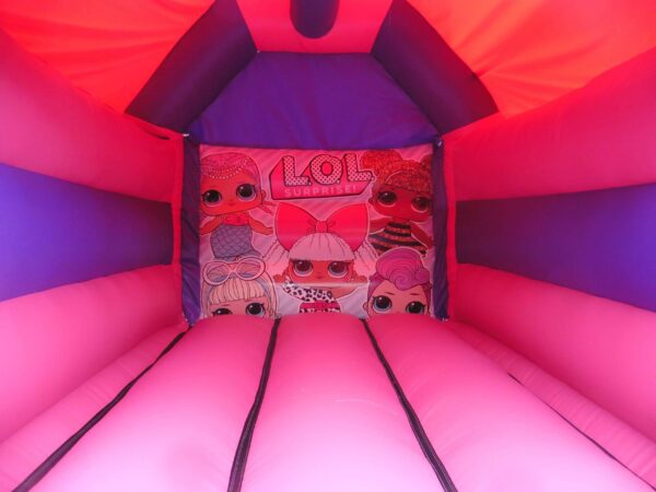 15 x 11 ft Commercial Bouncy Castle for sale with popular themed girls artwork and colours. A massively popular size with a fun and vibrant themed digitally printed artwork which is especially appealing to girls.