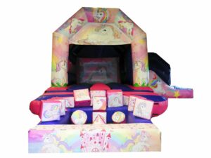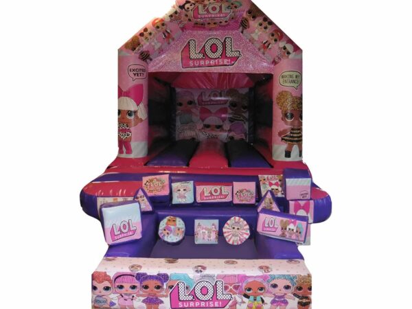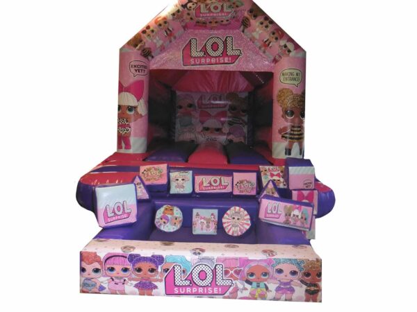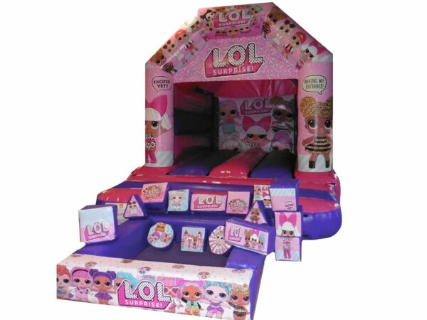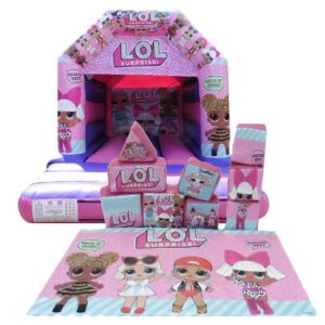 Commercial Girls Themed Children's Bouncer and Soft Play package for sale which includes our most popular sized bouncy Castle at 15x11ft, 15 Piece soft Play set and a Foam Ball Pond. All completed with Vibrant, colourful LOL themed artwork so its especially appealing to girls.