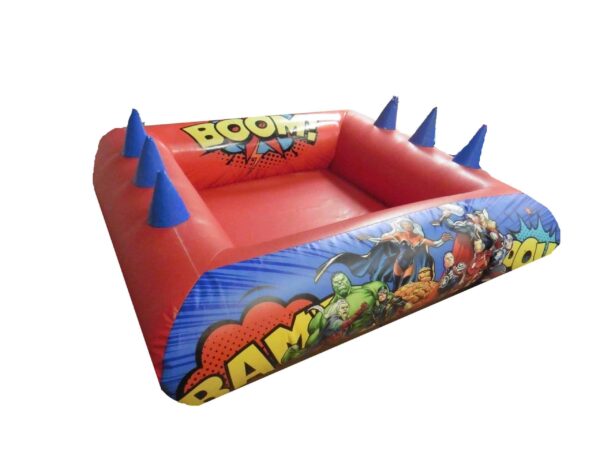 7 x 7ft Inflatable Superhero Ball Pond for Sale. Especially appealing to younger boys with this fun theme, digitally printed artwork and colours. Also includes air ball challenge on the side walls to add some extra entertainment.