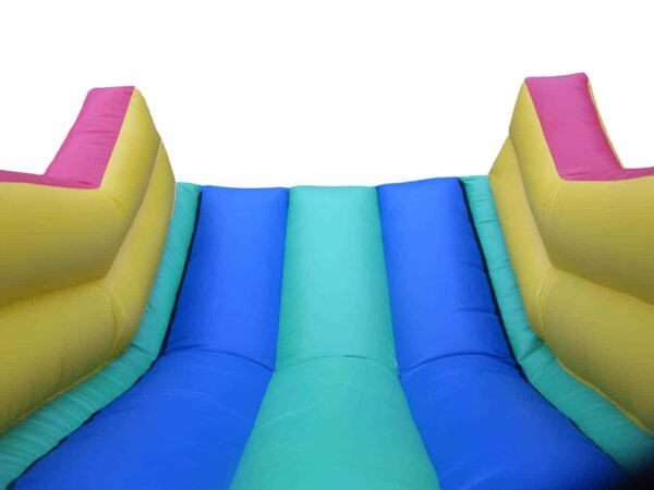 A HUGE Inflatable Bouncy Obstacle Course for sale manufactured by Premier inflate Ltd who specialise in manufacturing mega commercial bouncy obstacle courses available in a variety of sizes & colours. This ULTIMATE Obstacle course consists of two up & over slides (5ft & 7ft Platforms) with Slip & climb sheets as well as three other parts which include a variety of obstacles such as inflated biff & bash posts, climb walls, tunnels, squeeze post plus so many more! This Bouncy obstacle Course is split into five sections for ease of transport & storage. Ideal for large corporate events as well as team building bouncy fun! Perfect for both boys and girls. This Bouncy Castle Obstacle Slide course can be made to your specifications i.e. choice of colours, size, style of artwork and can also include your business contact details.