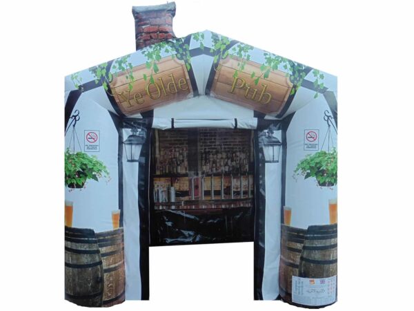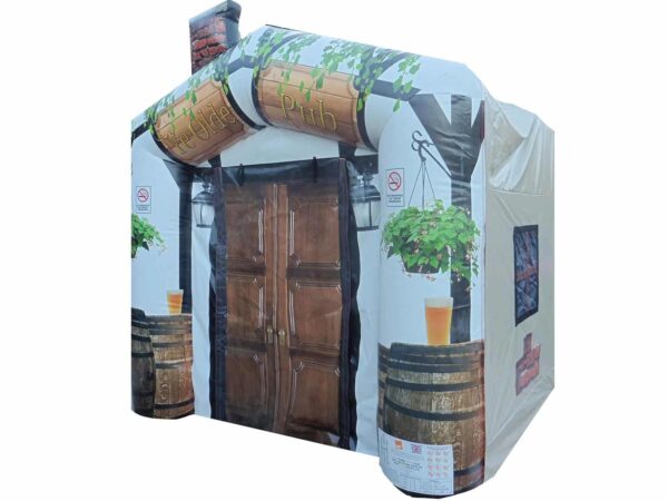 15 x 12ft Inflatable Pub/Bar Marquee for Sale which includes a fully fronted digitally printed artwork as well as inner rear wall. Stand out amongst any crowd, this inflatable bouncy pub marquee is a real head turner! Become your very own landlord today & start hiring out this incredible Inflatable bar and earn £££'s of extra income.