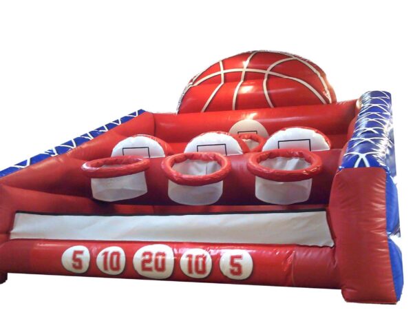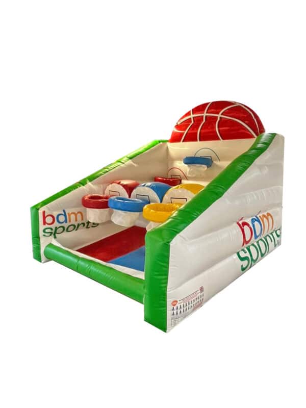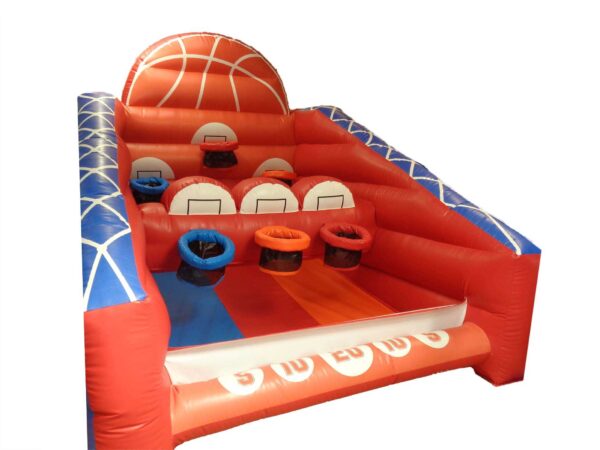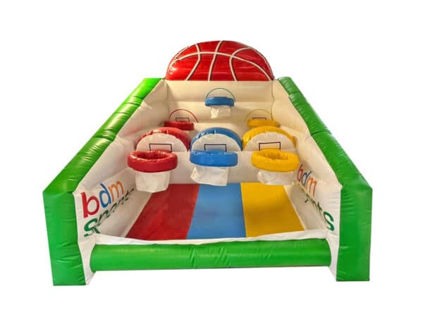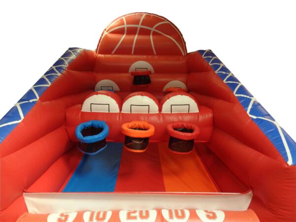 A superb Inflatable Basket ball Shot game ideal for all ages. Available to purchase for yourself this can be a family inflatable to pull out when the weather is nice or an additional extra hire item for local bouncy castle hire/rental companies. Manufactured within the UK this heavy duty commercial 610gsm Inflatable basket ball hoop game is available to buy at a fantastic affordable price! A Fun and exciting game for all of the family to get involved with - can be used for birthday parties or events.