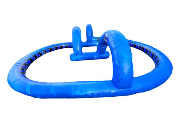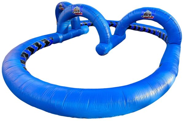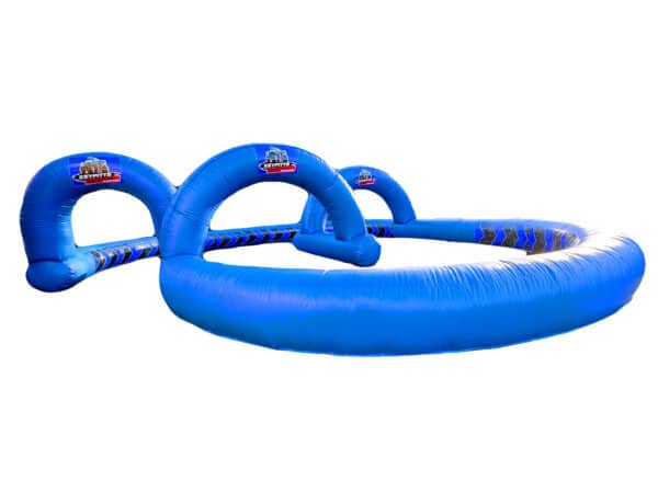 A simple but effective 50x40 ft. Inflatable Crazy kart Race track which is ideal for low powered quads/cars as well as Didi cars for any paying events whether this be car boots or schools & festivals. This superb low barrier design is made using high quality commercial heavyweight 610gsm Bouncy castle materials which is durable & heavy duty with a robust finish. This heavy duty design features a unisex appeal and includes start/finish arches & entrance points. A simple but effective inflatable racing track available to buy at fantastic prices. Great inflatable appeal for both boys and girls. Add your own digitally printed artwork and/or logo. Can be made to your specifications i.e. choice of colours, size, style of artwork and can also include your business contact details.