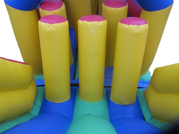 Heavy Duty Bouncy Obstacle Course for sale which features up & over 5ft. Slide and Bouncy Obstacle first part with netted sides for clear observation of participants. Includes internal Biff & Bash pillars & Tunnels. This Inflatable Bouncy Ob Course to buy comes in two pieces which are connected via Velcro. A unisex design which is great for both boys and girls. Add your own logo/details with digitally printed artwork. A popular sized bouncy obstacle course for sale which is ideal for back garden use. These style Jumping obstacle courses are a manageable weight which are easy to manoeuvre and will fit into the rear of most cars. Perfect for both boys and girls. This Castle can be made to your specifications i.e. choice of colours, size, style of artwork and can also include your business contact details.
