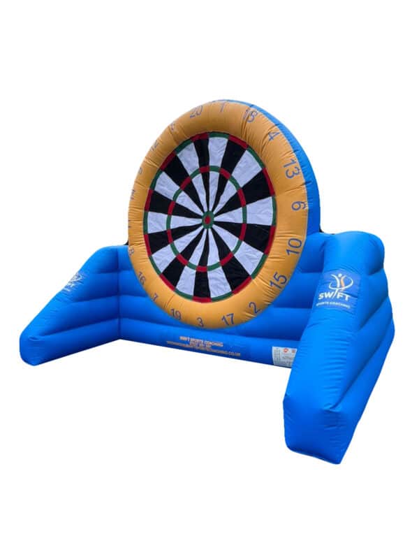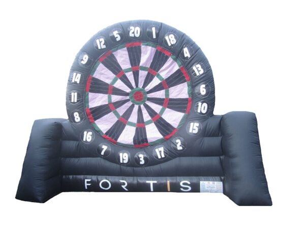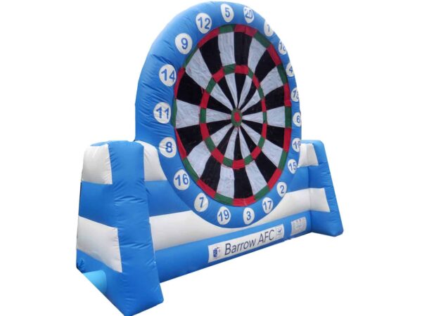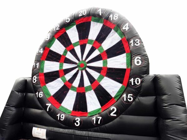 14x14 ft. Commercial Inflatable Dartboard for sale with branding at additional cost. A superb fun game with Velcro balls that stick to the inflatable. Who can score the highest with this unique crowd pleasing inflatable game? Ideal for all occasions such as team building inflatable fun games. The most common size for this inflatable dartboard game consists of digitally printed lettering which is stitched onto the inflatable. This Bouncy dartboard game is a manageable weight which are easy to manoeuvre and will fit into the rear of a car. Perfect for both boys and girls as well as all ages for hours of fun! This Inflatable Foot Dartboard can be made to your specifications i.e. choice of colours, size, style of artwork and can also include your business contact details.