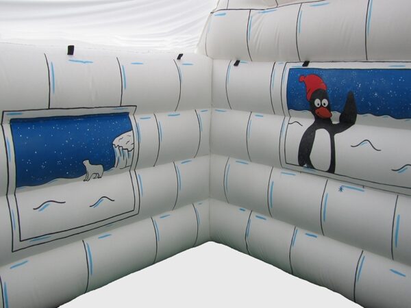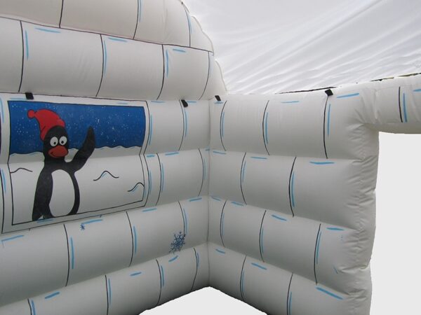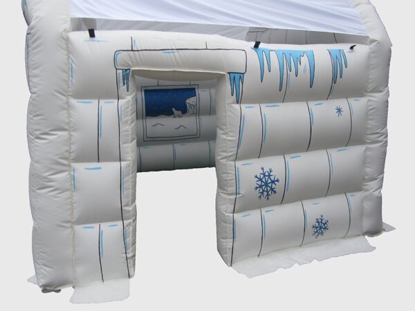 15 x 12ft Inflatable Frozen House / Igloo for Sale. Inflatable building which has been manufactured with a unique structure and completed with detailed hand painted artwork to look like an igloo / frozen house. Fun attraction for events, fates etc and a great seasonal inflatable.