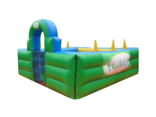 This 14x14ft Inflatable Soft Play Barrier is stimulating for toddlers and children in a number of different ways there is an air ball challenge along the side walls and a play area which would be suitable for soft play shapes etc.
