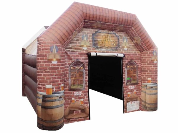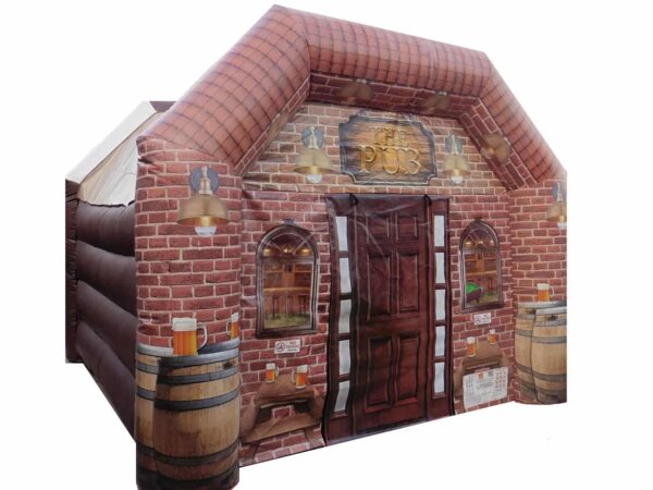 15 x 12ft Inflatable Pub/Bar Marquee for Sale which includes a fully fronted digitally printed artwork as well as inner rear wall. Stand out amongst any crowd, this inflatable bouncy pub marquee is a real head turner! Become your very own landlord today & start hiring out this incredible Inflatable bar and earn £££'s of extra income.