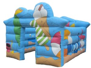 7x7 ft. Inflatable Stall in a variety of colours & themes for sale. This Inflatable bouncy Stall shop is a perfect earning potential. No matter what you sell this inflatable drinks stall counter will really stand out amongst the competition. Velcro attachments & banners included.