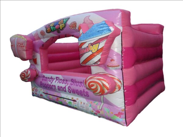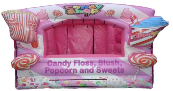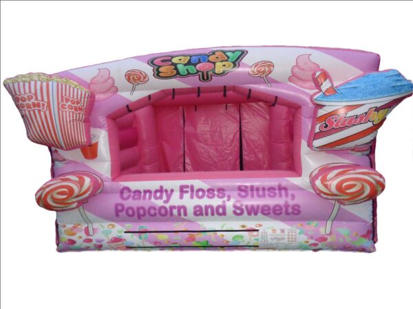 15 x 12ft Inflatable Sweet Stall for Sale. A uniquely designed inflatable stall top offer something different at events where you can offer/sell sweets and goodies. A great all round inflatable for events, fun days etc.