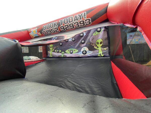 Additional extras can be included such as deflation zips, step banner with your contact details, back wall netting, buckle straps sewn to the funnels for your convenience, extra high walls and further artwork added to the inside walls.