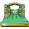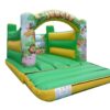 15 x 11 ft Commercial 4 Post Rounded Arch Jungle Themed Bouncy Castle for sale. A massively popular design and perfect for Indoor Hires due to its low height. Digitally printed Unisex Jungle artwork and themed colours.