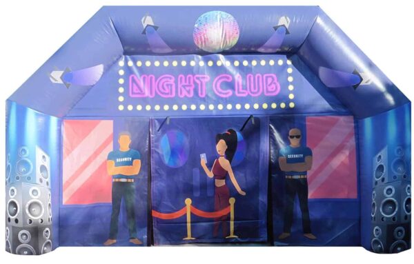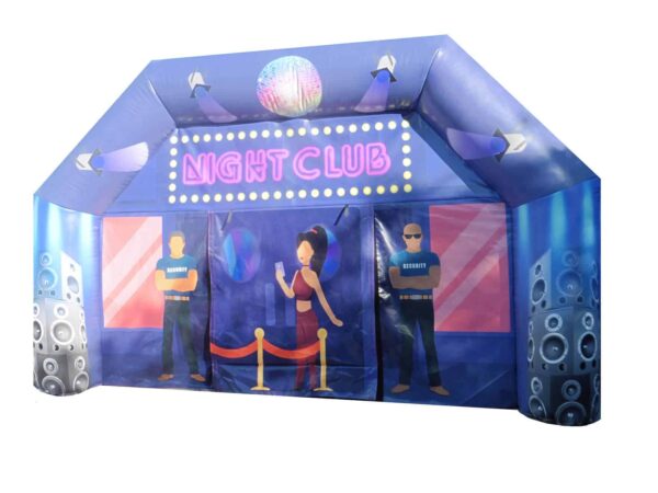 17x17ft Disco Marque for Sale with vibrant digitally printed artwork. This Disco themed artwork inflatable tent which can either be hand painted or digitally printed includes Bluetooth Speaker and disco light so it has the full disco effect for any event.